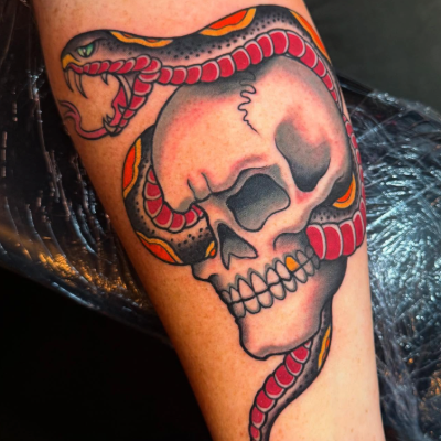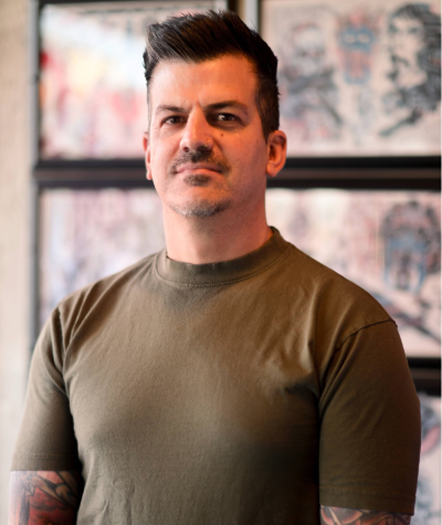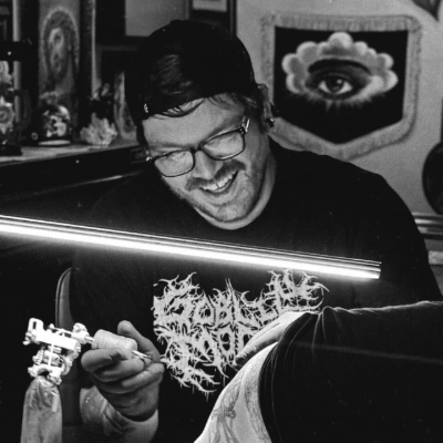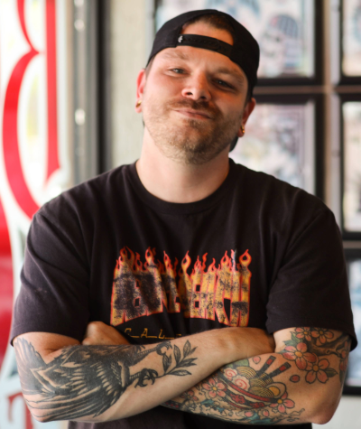 Clint is the shop’s resident apprentice. Between raising his kiddo and running D&D campaigns, he’s learning the ropes of tattooing under Roger’s mentorship.